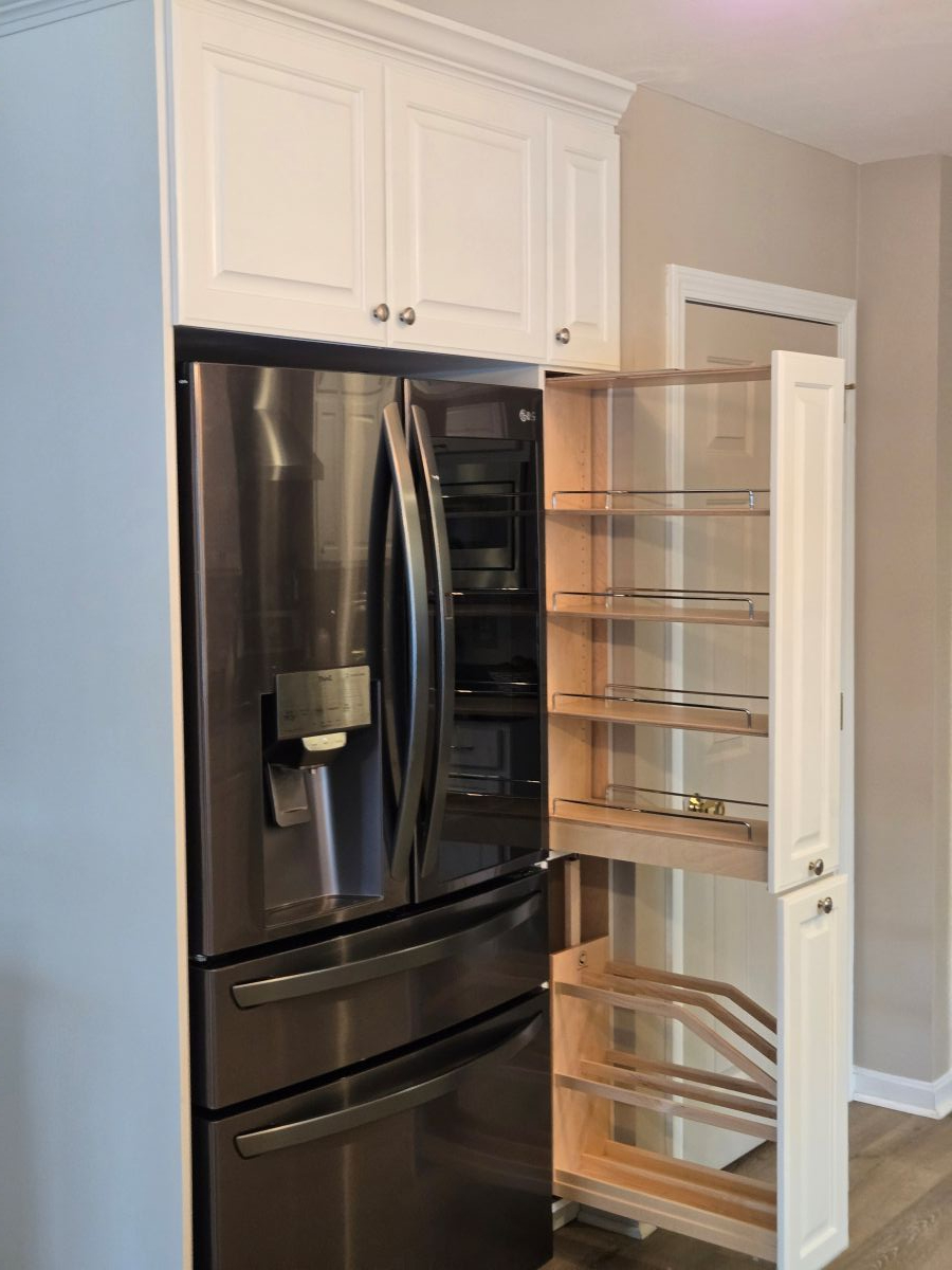 Take a look at some of the accessories we offer—from smooth‑gliding roll‑out trays to custom drawer dividers, spice organizers, trash pull‑outs, and clever laundry solutions, these upgrades make everyday tasks easier and your cabinets far more functional. Whether you’re improving a kitchen, bath, or laundry room, each accessory is designed to fit your space, your routines, and the way you actually live.